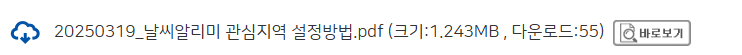 기상청 정보를 확인하시어 철저한 준비로 인명 재산피해사 없도록 준비하시기 바랍니다.