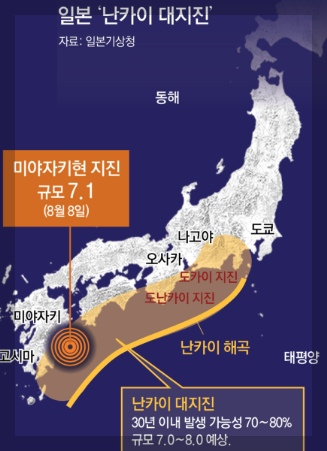 “난카이 해곡(Nankai Trough)”에서 대지진이 발생할 가능성이 높다고 공식 경고하고 있습니다.