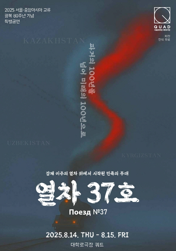 대학로극장 쿼드에서 열리는 ‘열차 37호’는 중앙아시아로 이주한 고려인들의 삶과 독립의지를 아름다운 뮤지컬로 풀어낸 작품입니다.