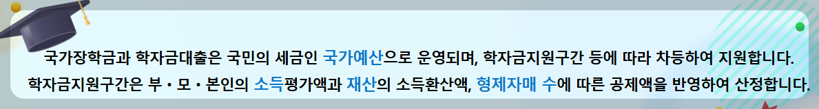 국가장학금은 “어느 대학”에 진학하느냐보다 ‘재학 상태’와 ‘소득 수준’ 이 더 중요합니다.